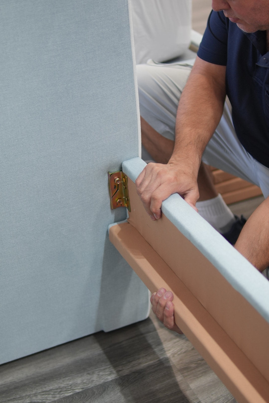 At this point, your daybed should have a sturdy “U” shape with both arms attached.