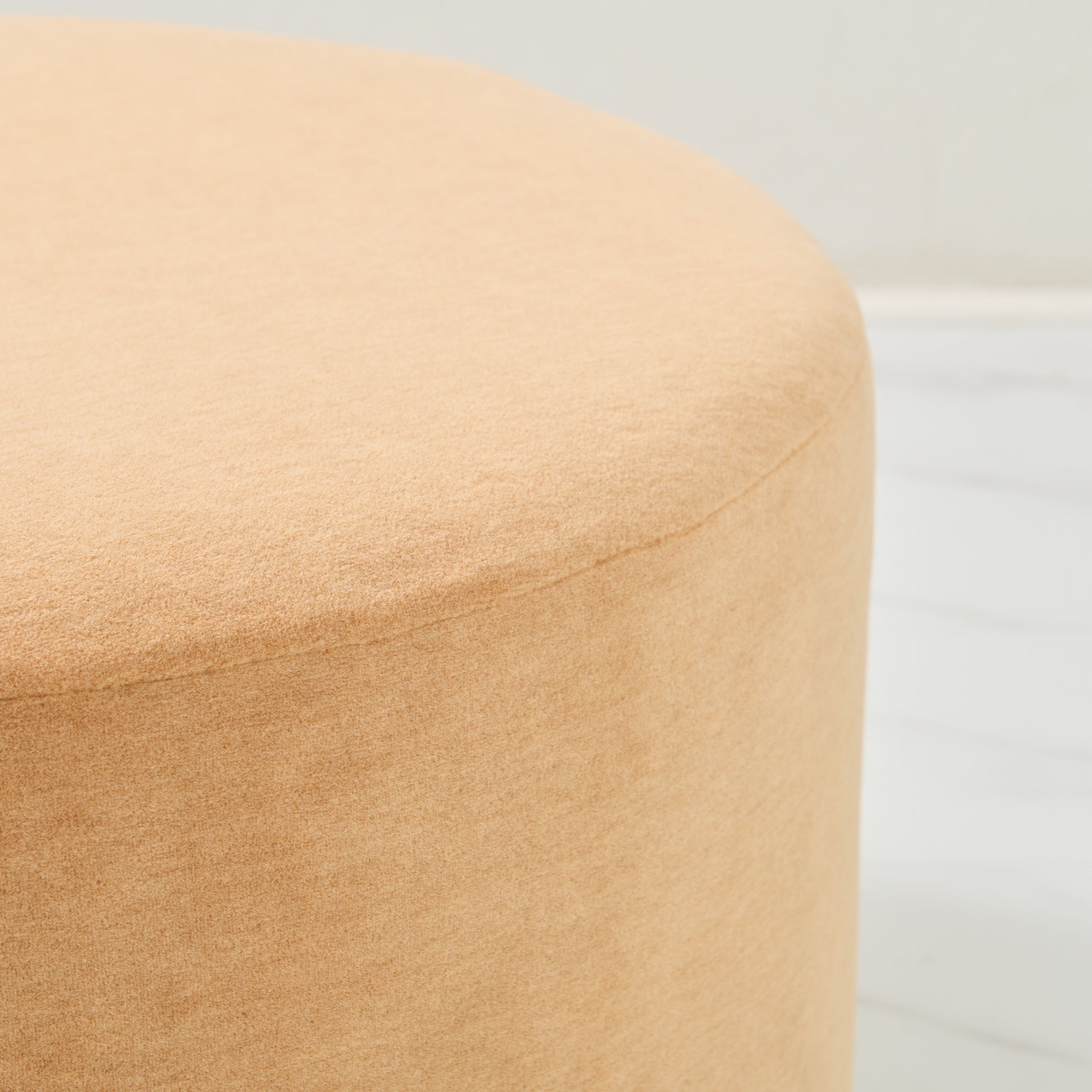 24" Round ottoman in this beautiful Brown Mohair Fabric.