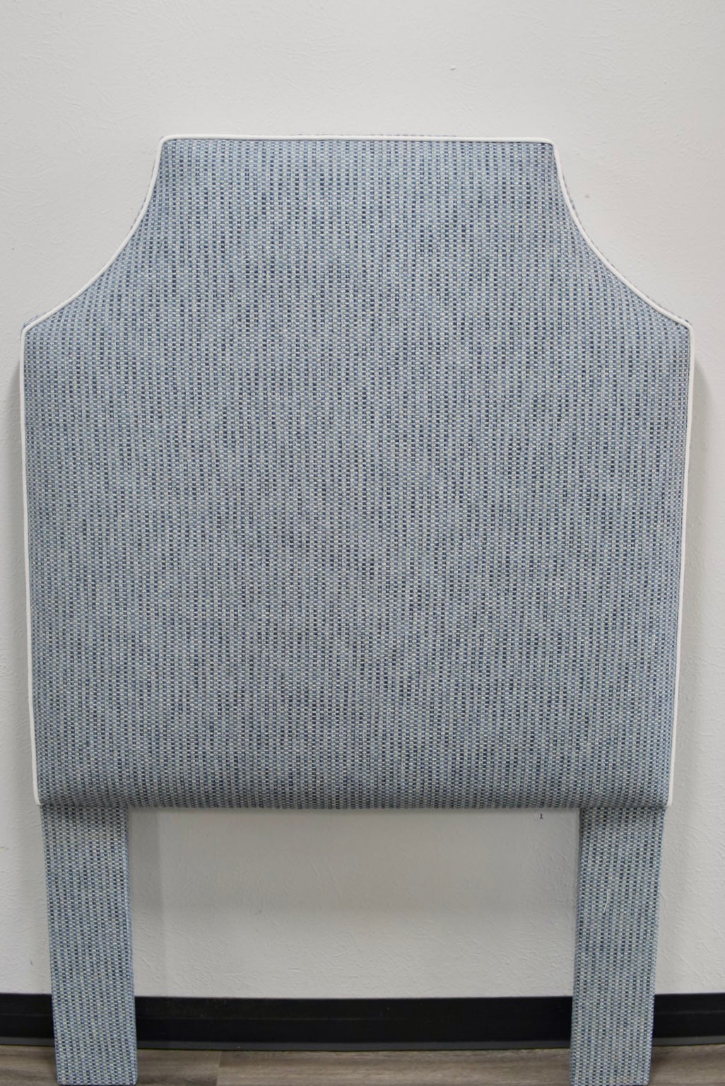 60” H Twin Headboard in Blue and Navy Fabric - White Trim