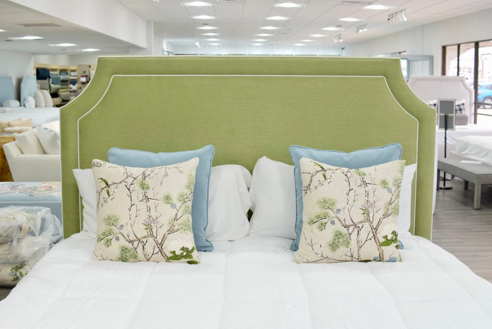 • Fabric: Pistachio Green Woven - White Trim