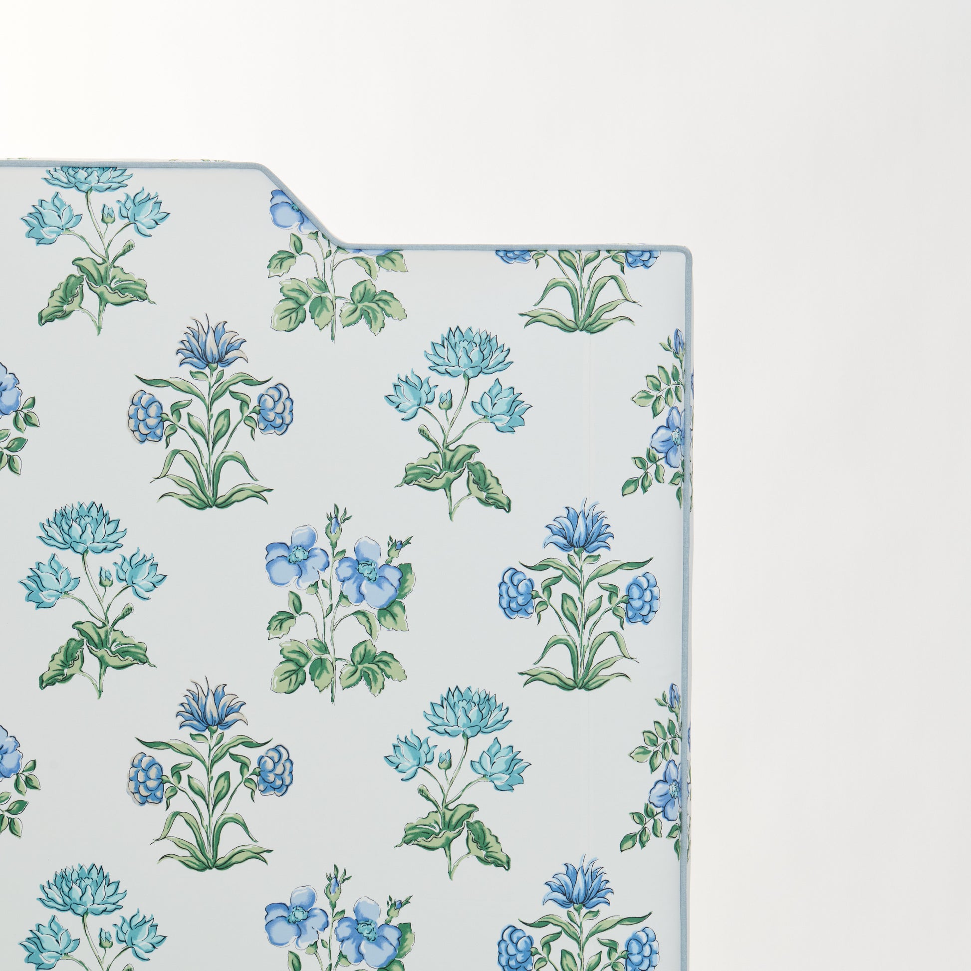 65”H Queen Upholstered Platform Bed - Fabricut Floral Fabric - Sky Blue Trim