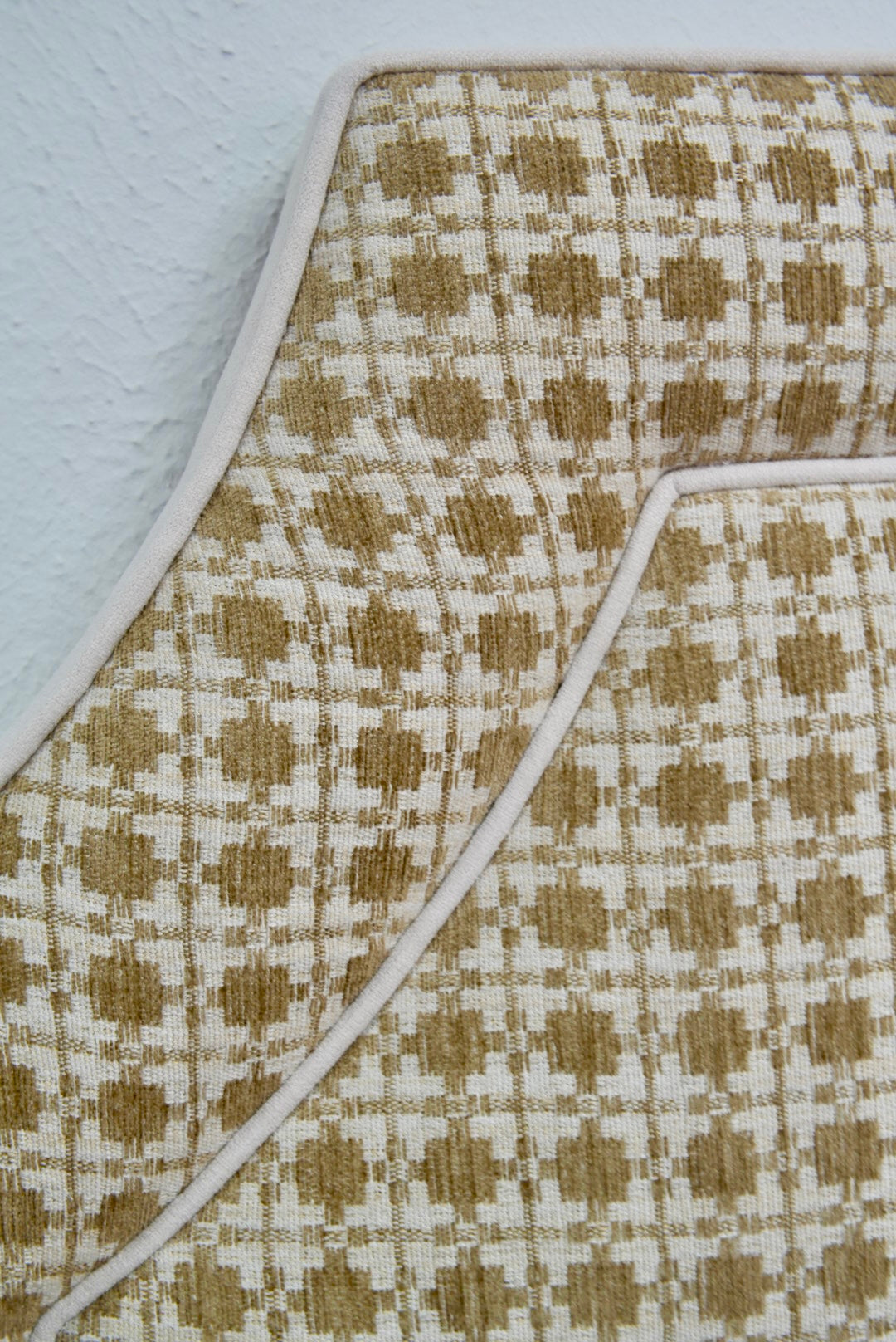 65" H Twin Headboard in Camel Kravet Couture Fabric - Cream Trim