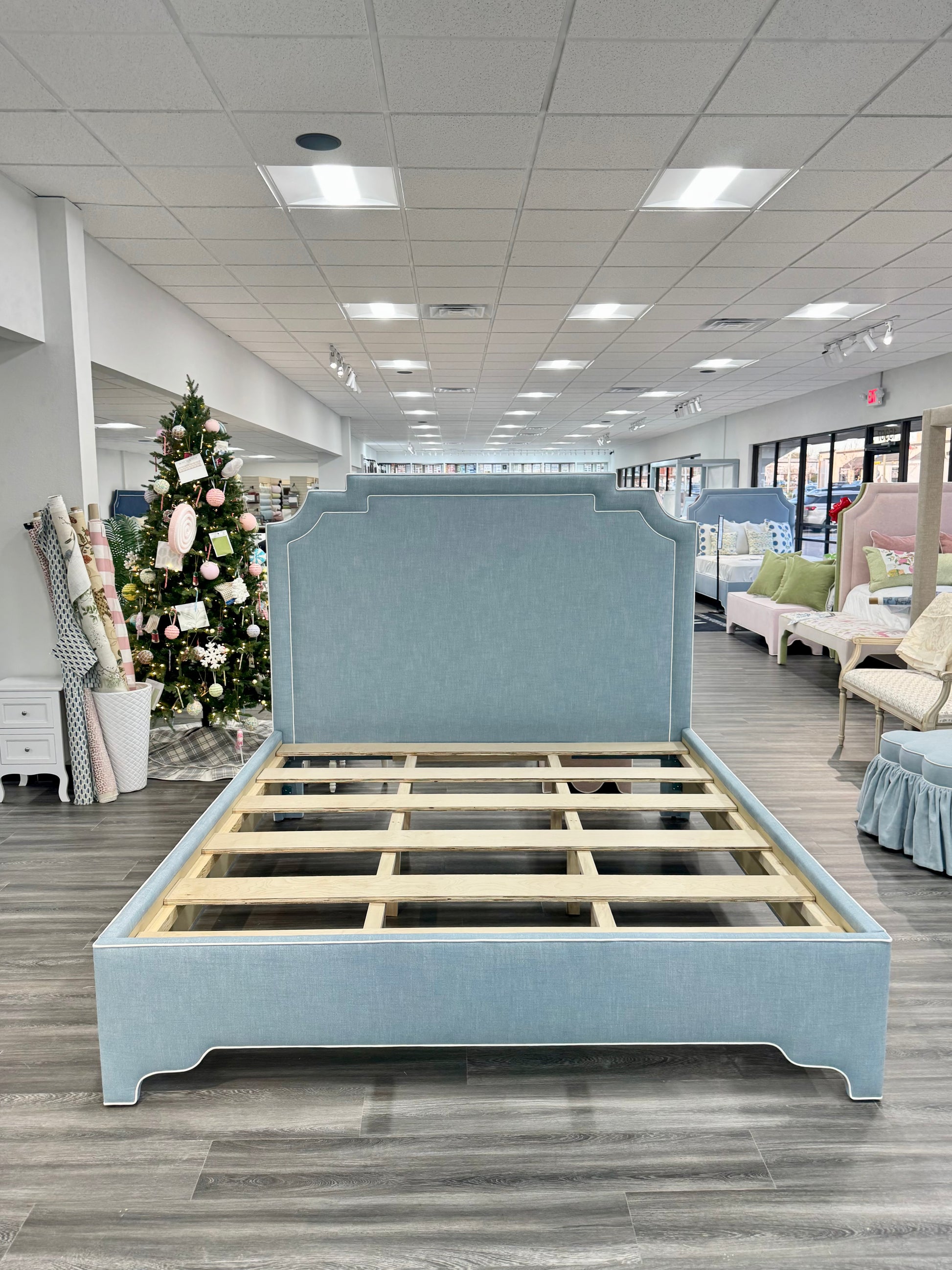 65"H King Bed - Glacier Blue Linen Fabric with White Trim