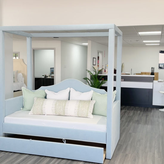 Twin Trundle Canopy Daybed - Sky Blue Woven Fabric