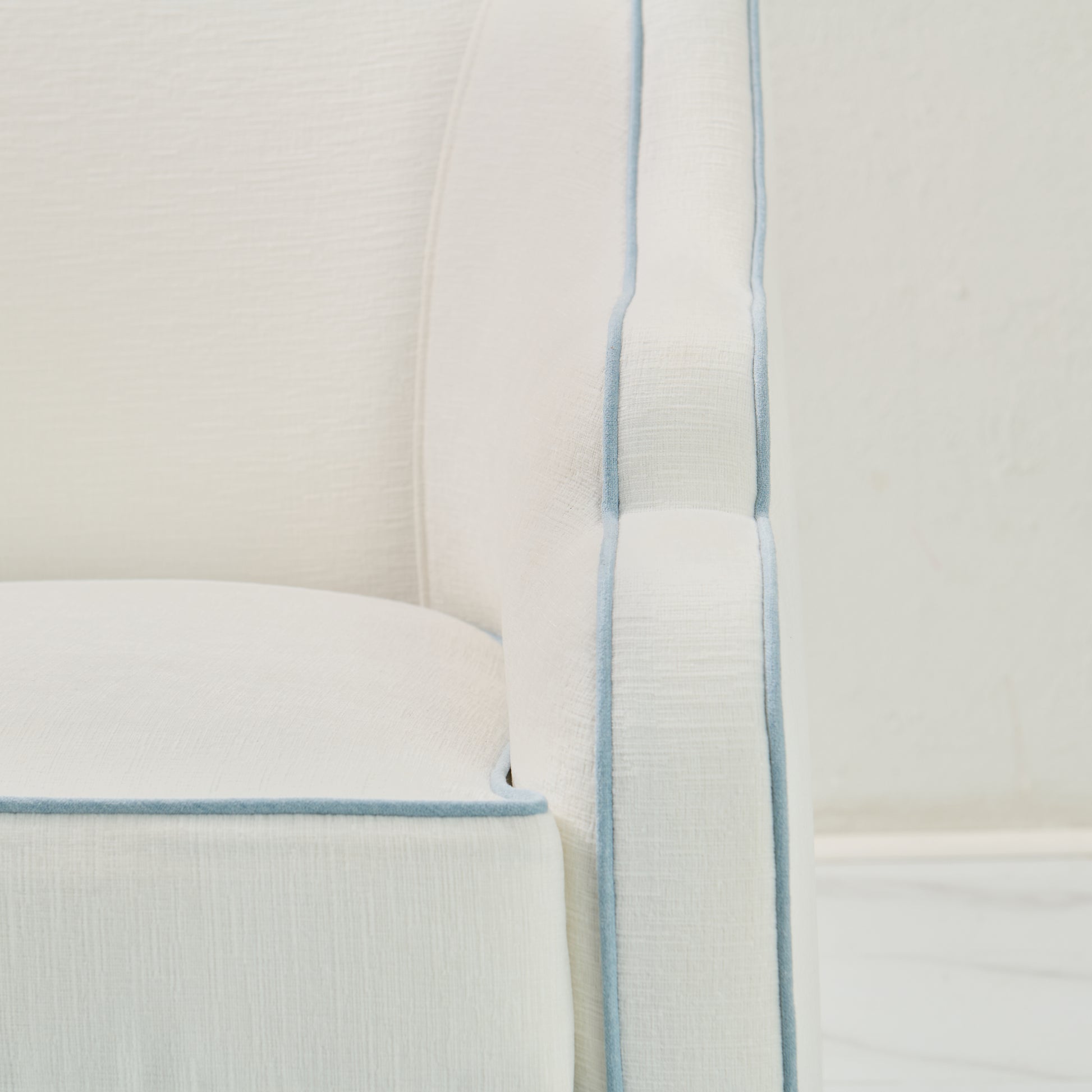 Fabric: White Performance Fabric - Sky Blue Trim