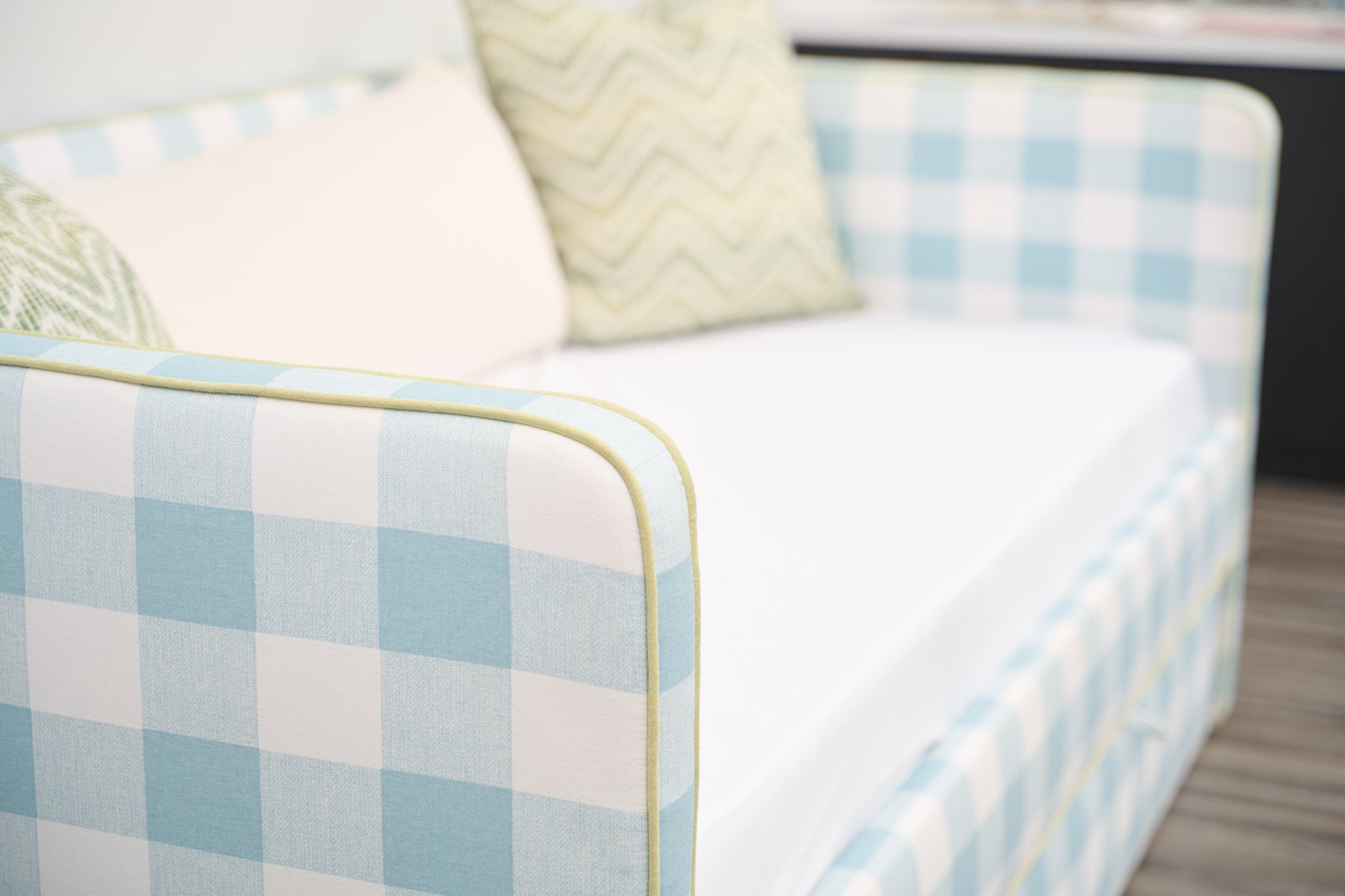 Buffalo Checkered fabric by Headboards World features a durable 100% cotton composition with a fabric weight of 6.9 oz/yd², ensuring long-lasting comfort indoors. Designed with a sturdy 7oz cotton basecloth and a high double rub count of 30,000, this fabric withstands frequent use while maintaining its quality. Its 54-inch width and distinctive checkered pattern, with horizontal and vertical repeats of 5.375 and 6.375 inches respectively, make it versatile for various upholstery applications. The SW cleaning code facilitates easy maintenance, ideal for indoor environments.