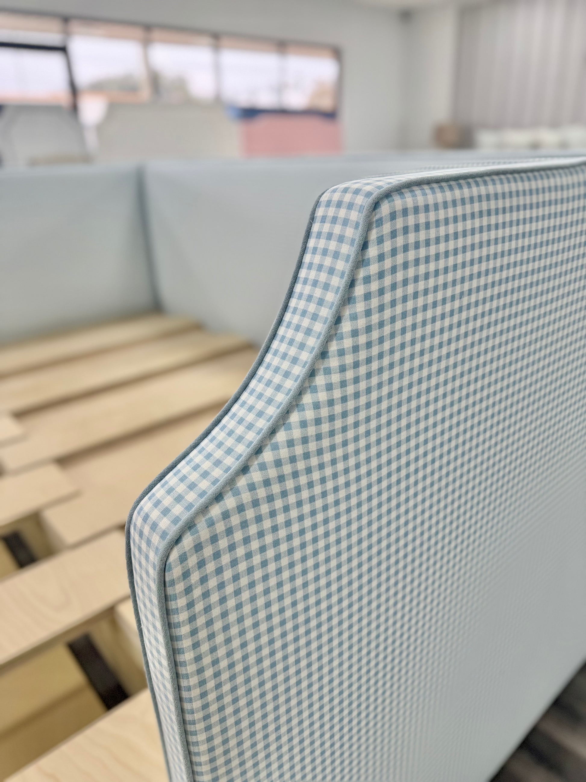 • Fabric: Blue Gingham fabric - Sky Blue Trim