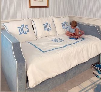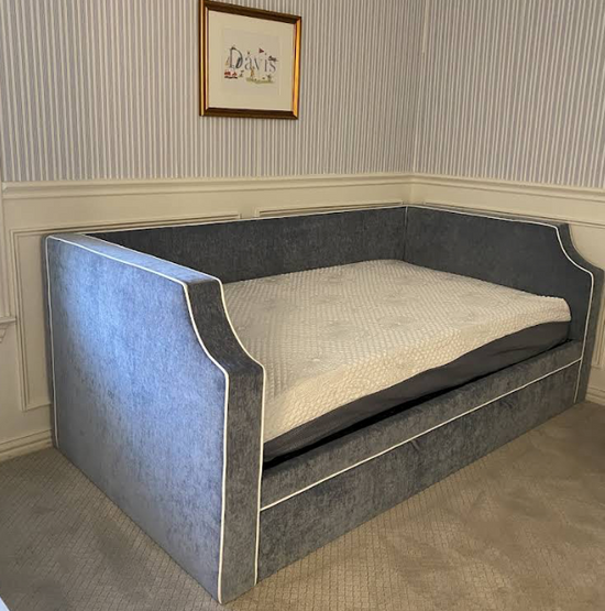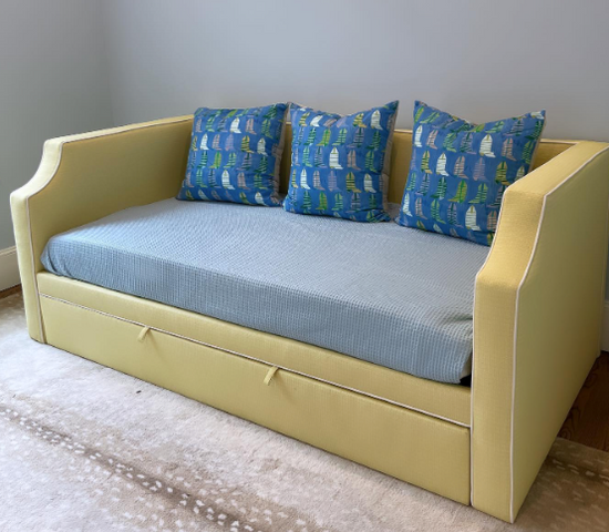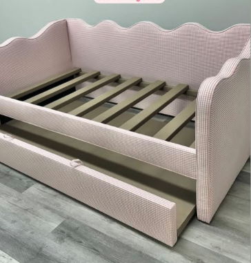 Twin Trundle Daybed - Scalloped - Pistachio Green Woven Fabric with White Trim